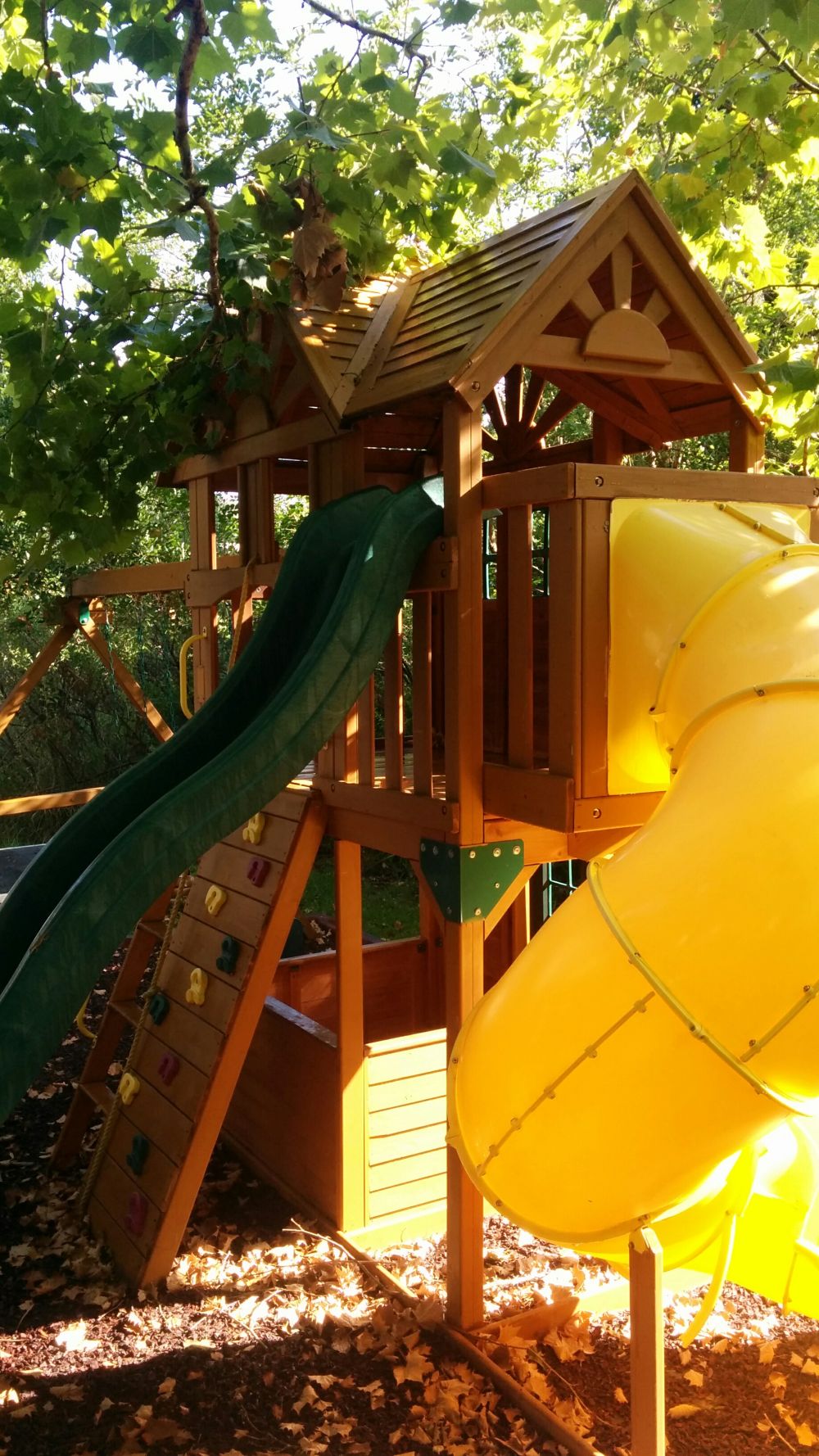 Una bonita combinación de casa del árbol y juego