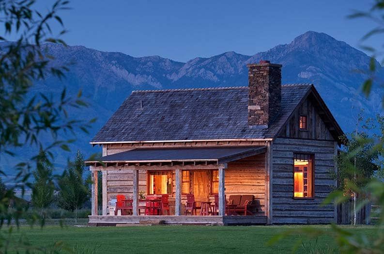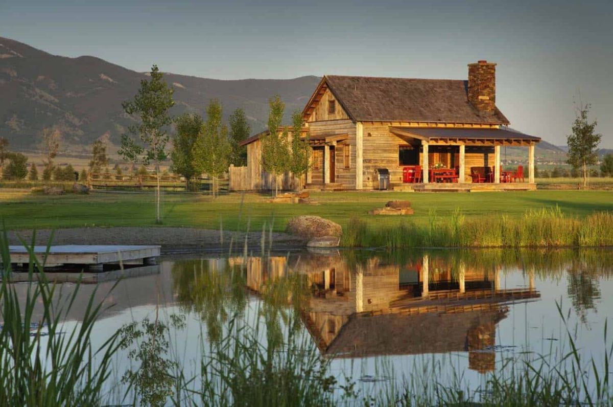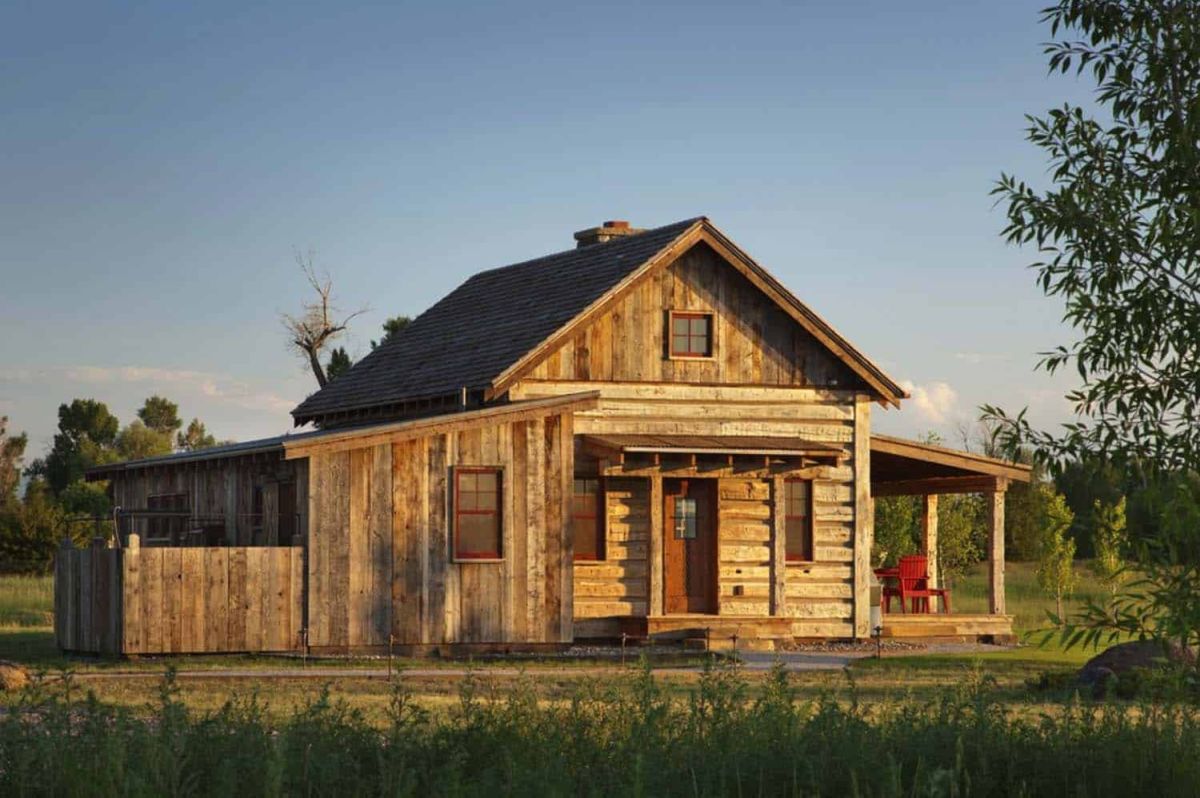La estructura está en Montana y tiene un gran porche. En el interior hay un área de cocina y sala de estar en la planta baja y un dormitorio tipo loft en el piso de arriba. También hay un baño con ducha al aire libre y muchas otras características interesantes, incluida una chimenea revestida de piedra.