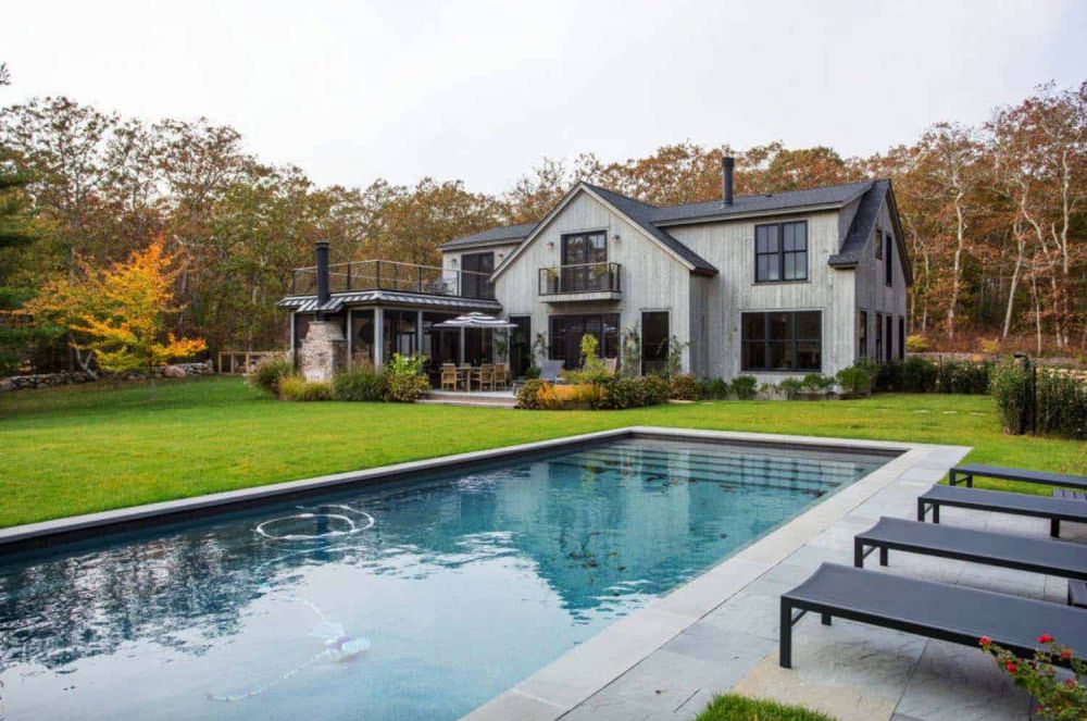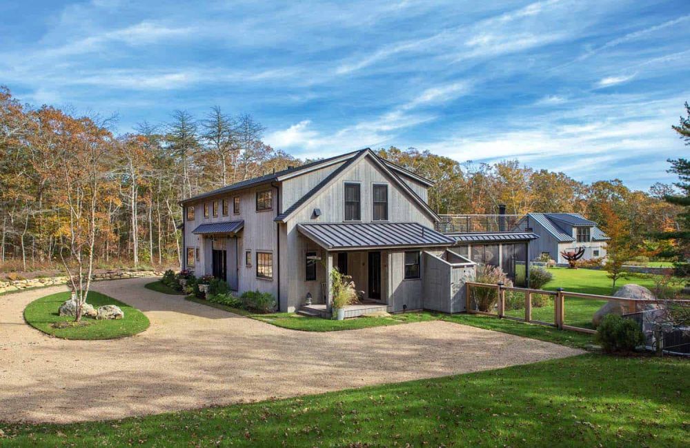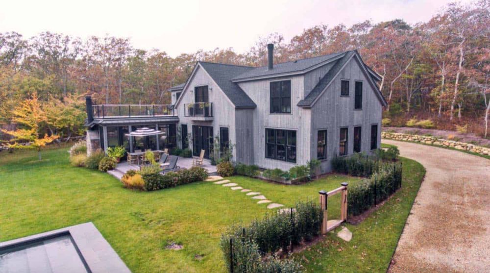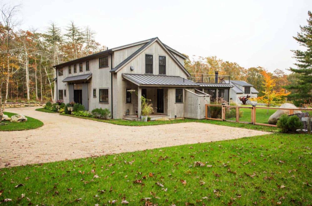 En una nota diferente, esta moderna casa estilo granero tiene un encantador ambiente costero que combina bien con su diseño inspirado en una casa de campo.