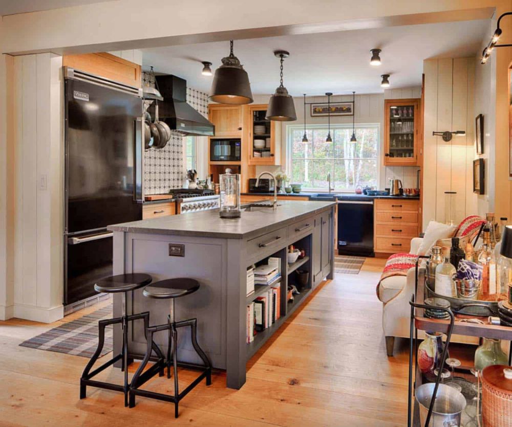 Tienen un ambiente rústico de la vieja escuela con sus techos inclinados y exteriores revestidos de madera. Y el uso de materiales naturales en toda la casa complementa varias características modernas. Y el resultado es una casa popular con mucho encanto .
