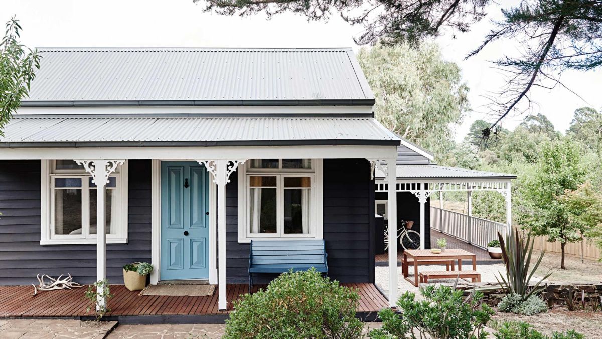 Este tono es un clásico y está experimentando un renovado interés entre todos los colores de casas exteriores este año. Es particularmente complementario a la madera y a los acentos cremosos. Si el azul marino simple es un poco demasiado básico para usted, moverse hacia la gama de grises, que le da al azul marino una sensación más melancólica, es una opción similar.
