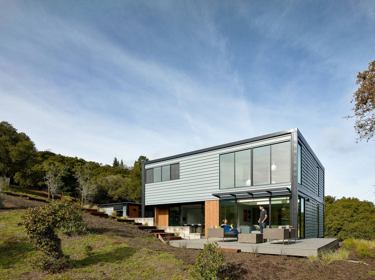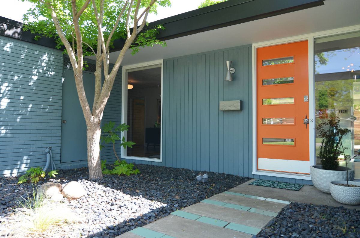¿Quién puede resistirse al azul, en cualquier tono ? Si su casa moderna de mediados de siglo tiene un poco de madera en el diseño, el azul es un excelente color exterior complementario. Oscuro o claro, se sentirá bien redondeado y personalizado cuando haya terminado.