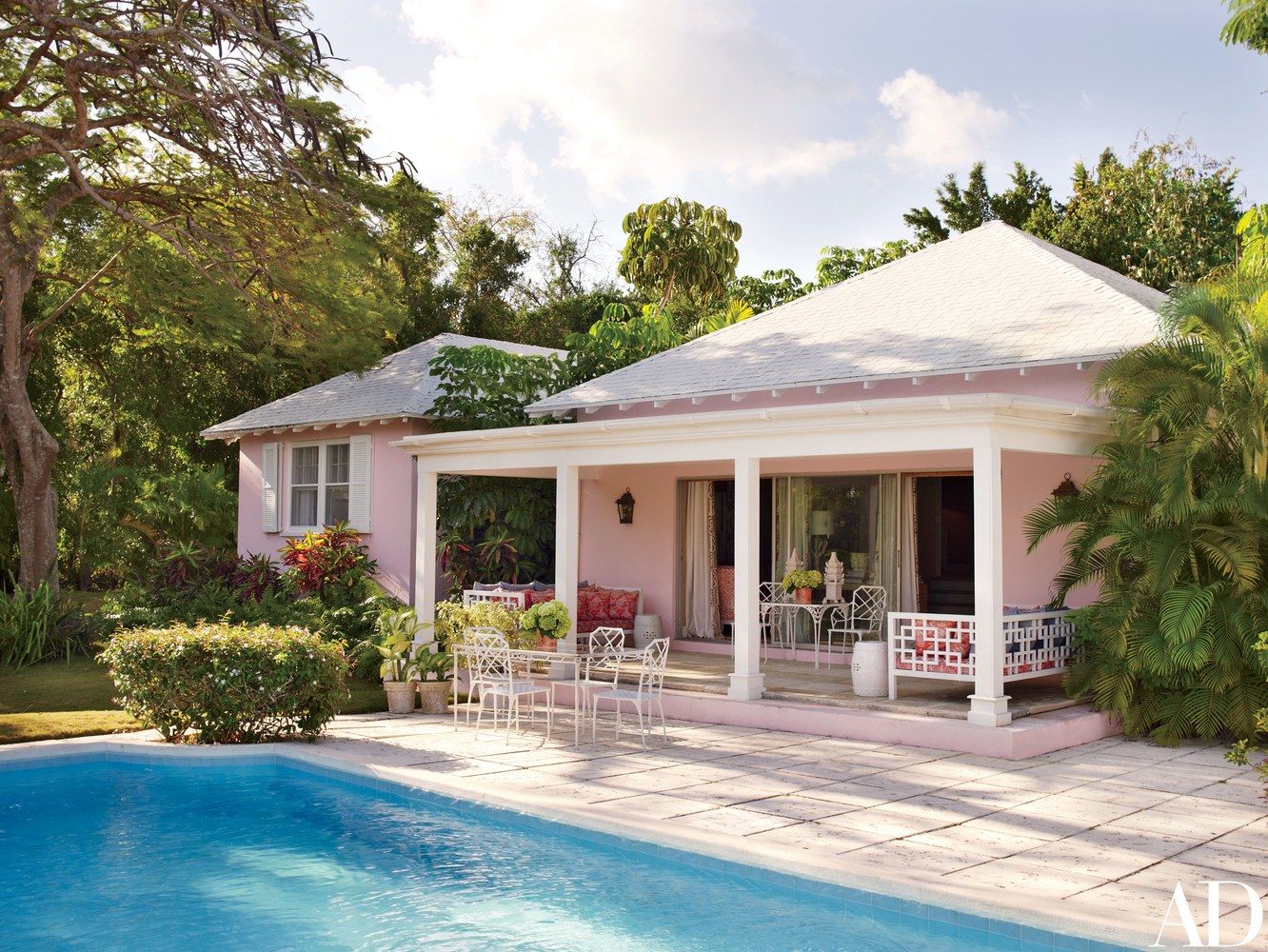 ¿ Una cabaña rosa con adornos blancos ? Suena como algo sacado de un libro de cuentos. Excepto que existe y parece la casa de campo más veraniega de la historia. Entonces, aunque probablemente no pintaría su casa de clima frío en este tono rosado , ciertamente debería pensarlo para su casa de clima cálido.