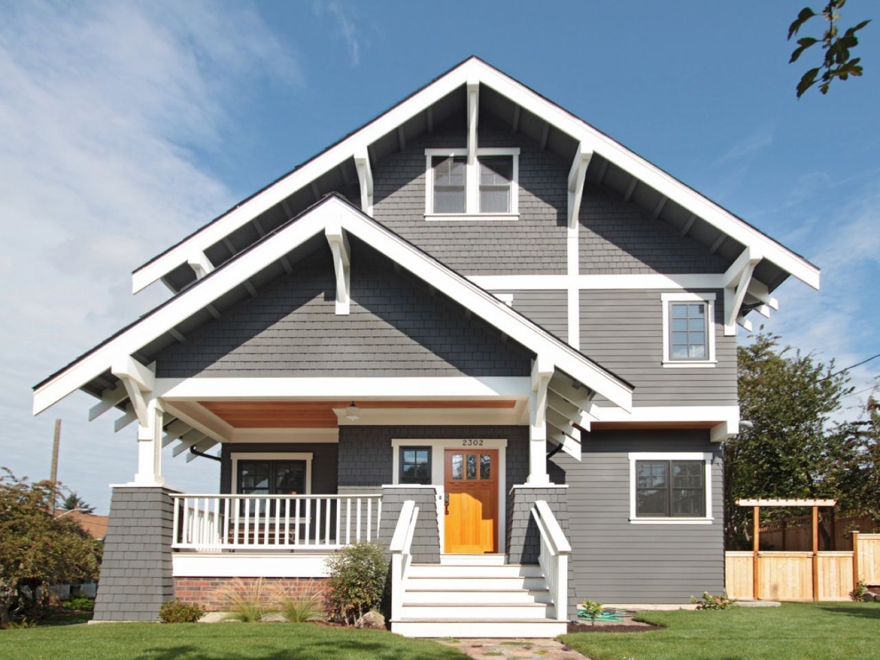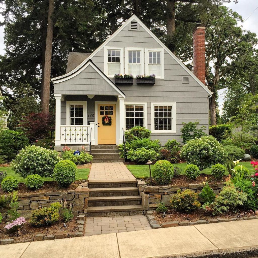 El gris puede parecer tan aburrido como el beige, pero no en el exterior de una casa de artesanos. Con todas esas molduras blancas brillantes, un exterior gris más oscuro le dará a su hogar un toque de vida y se sentirá más contemporáneo sin dejar atrás lo tradicional.