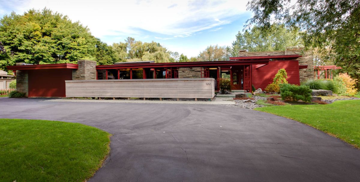 Red no se resigna a graneros y ranchos. ¡También puede verse genial en su exterior moderno de mediados de siglo! En un tono lo suficientemente profundo, hará que cualquier piedra o madera se destaque, lo que es exactamente el efecto que desea en este hogar con mucho acento.