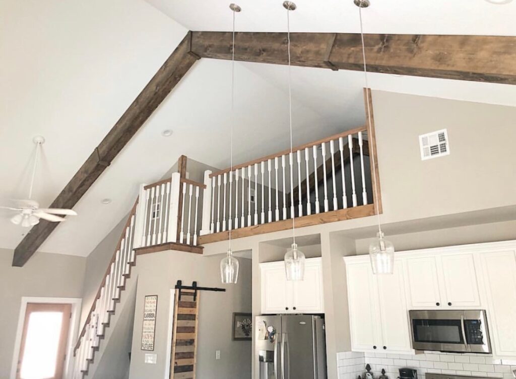 Los barndominoums casi siempre tienen un desván. Por lo general, está encima del baño y, a veces, de los dormitorios, porque el baño es la única habitación que debe cerrarse. Las otras habitaciones pueden estar abiertas.