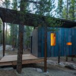 Los diseñadores utilizaron madera contrachapada de abedul para terminar el interior de la cabina y hacer que se sintiera más integral con el paisaje. Asimismo, el exterior está revestido de acero con vigas verticales para minimizar el impacto visual de las cabinas. Por lo tanto, las cabañas se integran bien en el bosque. Los diseñadores completaron este proyecto en solo unos meses.