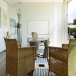 Los grandes ventanales eran muy importantes para los propietarios para mantener su conexión con la naturaleza. Con este fin, la casa también cuenta con un porche cubierto para cenar al aire libre en cualquier clima.