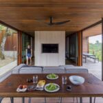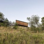 Esta cabaña, diseñada por MAPA en 2015, está ubicada en Catuçaba, Brasil. La región es remota, por lo que una opción prefabricada es la mejor opción para el sitio. Rodeada de una densa vegetación y hermosas vistas, esta cabaña fue transportada en varios módulos y ensamblada en el sitio usando grúas.