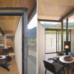 El ensamblaje de estas cabañas implicó conectar los elementos de la estructura, la caja y el marco. Las grandes ventanas dejan entrar abundante luz natural.