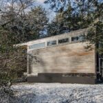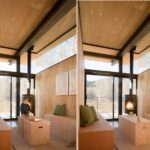 El grupo Ark Shelter creó la estructura «Into the Wild» para hacer precisamente eso; le permiten escapar al entorno natural. Con este fin, esta pequeña casa tiene grandes ventanas del piso al techo en todos los lados para mantener el enfoque en la naturaleza en lugar del interior. Incluso hay una ventana en el techo para que puedas dormir bajo las estrellas. Esta es la cabina aislada prefabricada perfecta.