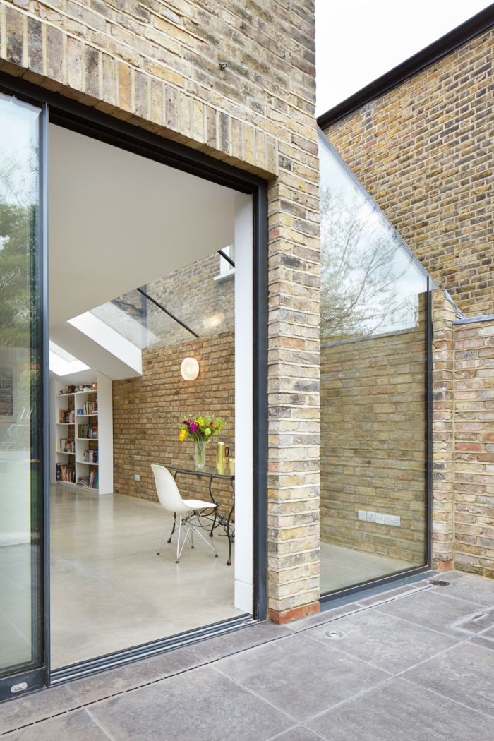 Al mirar esta casa de Londres, es posible que haya notado que no es solo una, sino dos secciones diferentes las que se destacan. Esto se debe a que la ventana abuhardillada en la parte superior se había restaurado previamente y luego se agregó la extensión hacia abajo y se hizo para que coincida con este estilo. La casa ahora cuenta con dos módulos contemporáneos que contrastan con su diseño original. La extensión fue agregada por el estudio Alma-nac y es bastante interesante, principalmente porque presenta una puerta de vidrio pivotante de tres metros de altura.