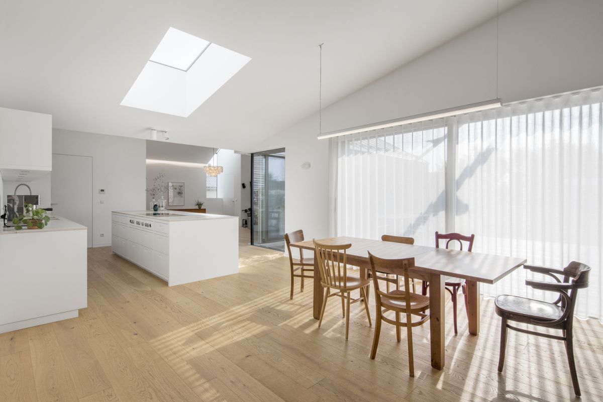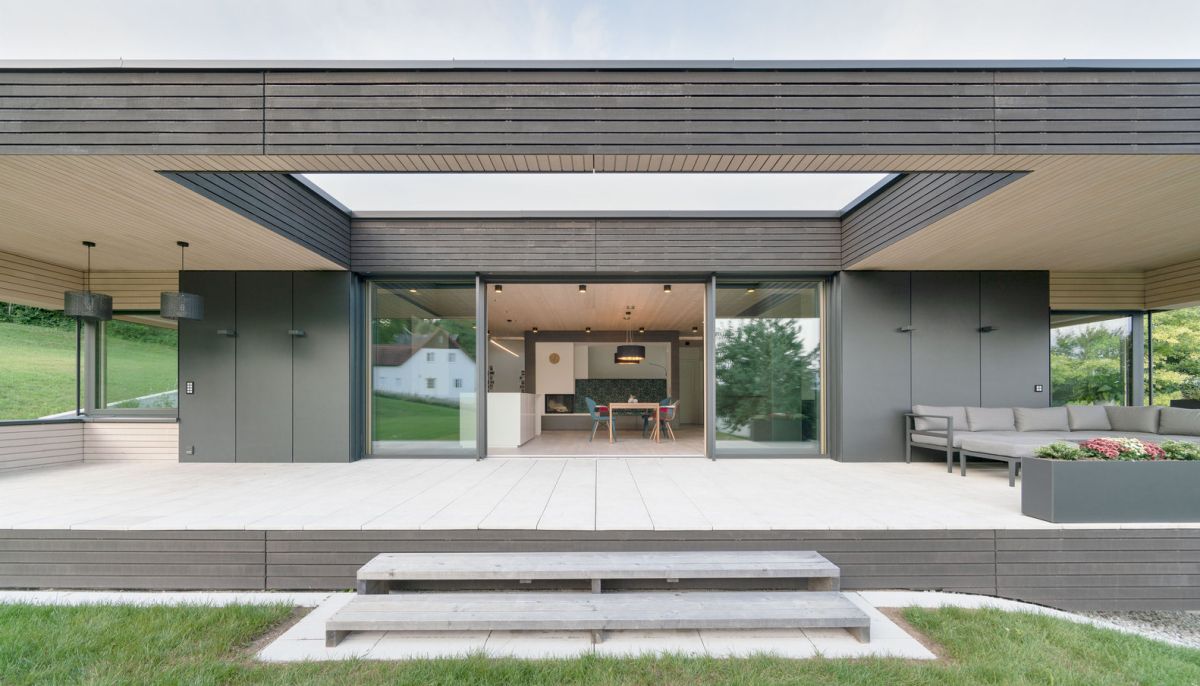 Esta hermosa casa ocupa un terreno inclinado con hermosas vistas de los Alpes austríacos. Ha sido diseñado para aprovechar al máximo las vistas y, como puede ver, sus áreas de estar interiores se abren a una gran terraza que se extiende hacia el jardín. Esta área social exterior cubierta es una característica definitoria de este proyecto, siendo el elemento que vincula la casa con su entorno inmediato y le permite aprovechar al máximo su ubicación. El proyecto fue completado en 2019 por el estudio de arquitectura Superfuturegroup .