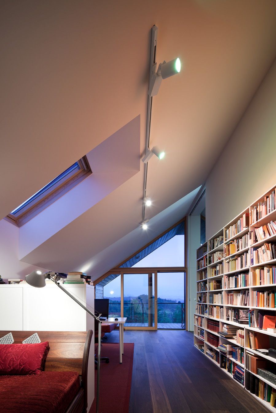 Por supuesto, no todas las casas austriacas tienen diseños estilo granero. Este, por ejemplo, tiene un diseño muy escultural y una geometría interesante y limpia. Fue diseñado por posición y topografía mimetizándose con la ladera y conservando lo mejor posible su entorno inmediato. Aunque la huella es bastante pequeña, la casa lo compensa al distribuirse en tres plantas diferentes. Las habitaciones se agrupan en volúmenes con diferentes orientaciones y vistas sobre el vasto y hermoso paisaje que rodea el sitio.