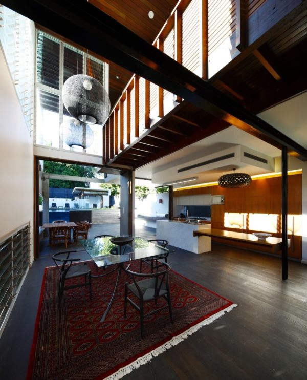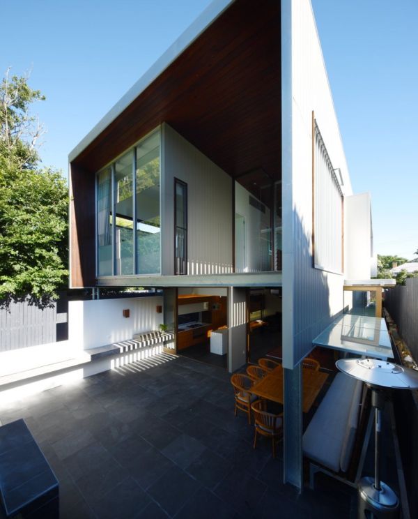 Esta casa se puede encontrar en Brisbane, Australia. Fue diseñado y construido por Shaun Lockyer Architects y tiene un aspecto contemporáneo. Pero no es exactamente una casa principal. Es, de hecho, una extensión que se construyó para una casa de campo de Queenslander. Está situado en un terreno pequeño y contrasta mucho con el volumen principal.