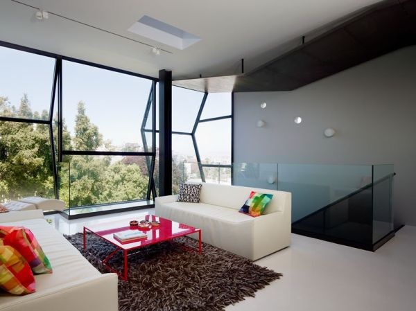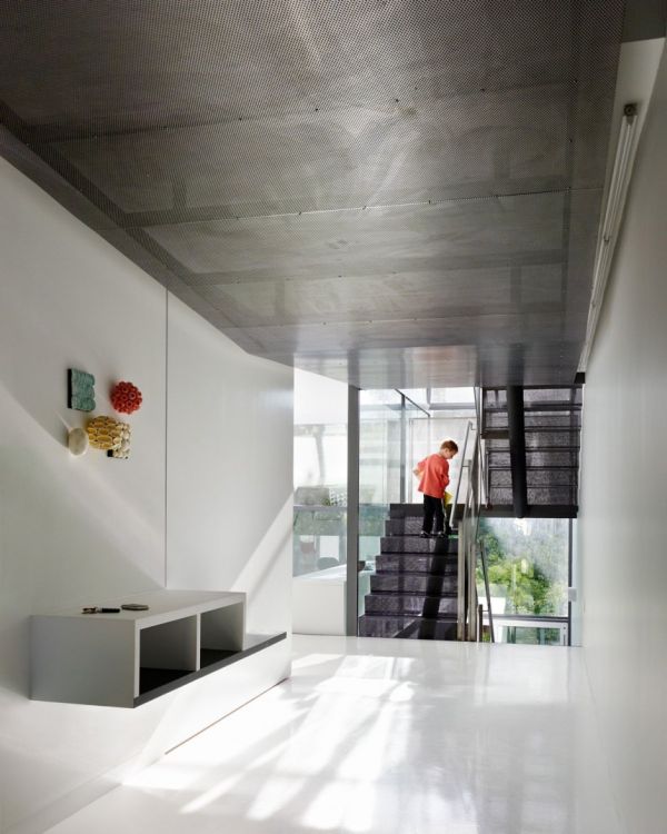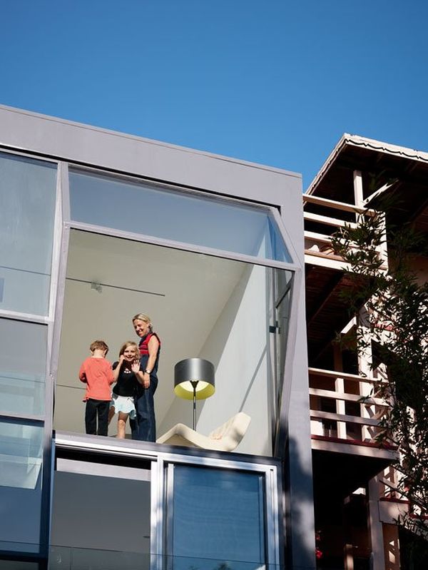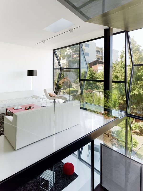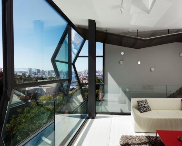 Los arquitectos idearon un diseño para una casa que tiene siete niveles. No es exactamente la casa pequeña y acogedora que uno podría imaginar que desearía una pareja soltera. Esta casa tiene seis habitaciones y la mayoría de las habitaciones cuentan con maravillosas vistas panorámicas del paisaje circundante. La casa fue construida sobre una estructura ya existente. Los niveles inferiores fueron completamente remodelados y el nivel superior del edificio original fue demolido para dar cabida a dos nuevos pisos.
