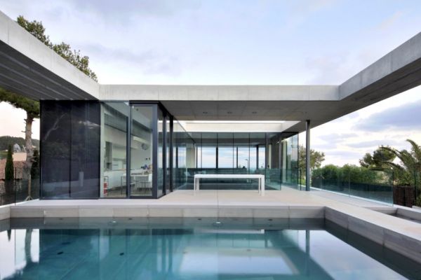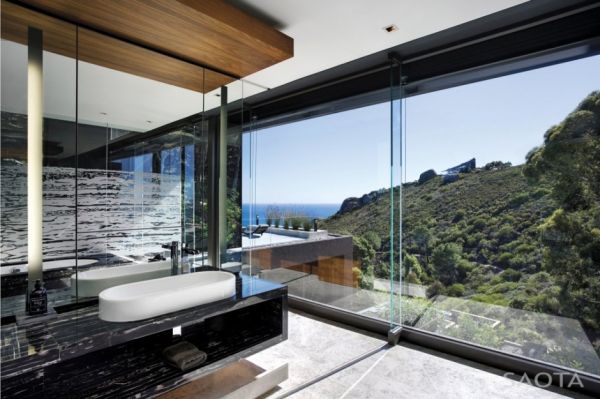 Pero a pesar de que la casa es grande e imponente, no se destaca mucho. Eso se debe principalmente a la fachada y los colores oscuros que se usaron. Permiten la integración de la casa al presentar características similares a las de la montaña. Las vistas desde allí son impresionantes. Las panorámicas sobre el mar son espectaculares y la fachada de cristal las muestra en todo su esplendor.