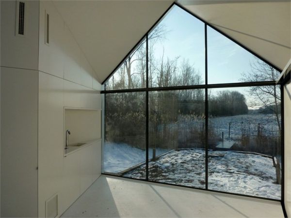 Dadas las localizaciones, había que tener especial cuidado con los elementos relacionados con el clima. Es por eso que la ventilación era un detalle importante. La casa se elevó a 60 cm del suelo y tiene calefacción por suelo radiante. Los espacios abiertos entre el techo y las paredes de vidrio fueron diseñados para regular la ventilación natural dejando escapar el aire caliente.