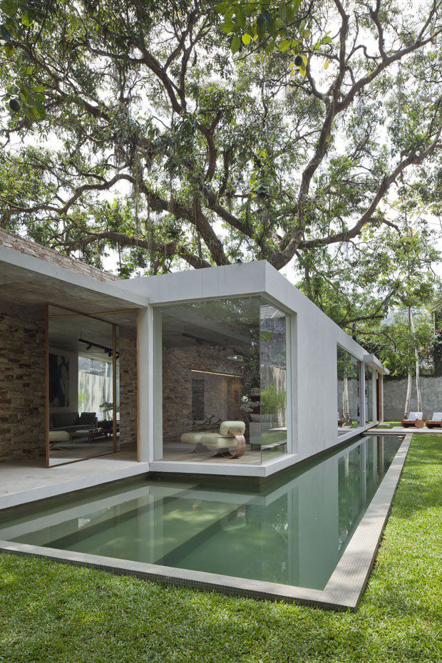 Cuando se encargó al arquitecto Alessandro Sartore que diseñara y construyera esta casa en Brasil, surgió un desafío. Había un gran árbol justo en el medio del sitio. En lugar de cortarlo, se tomó la decisión de construir la casa a su alrededor.