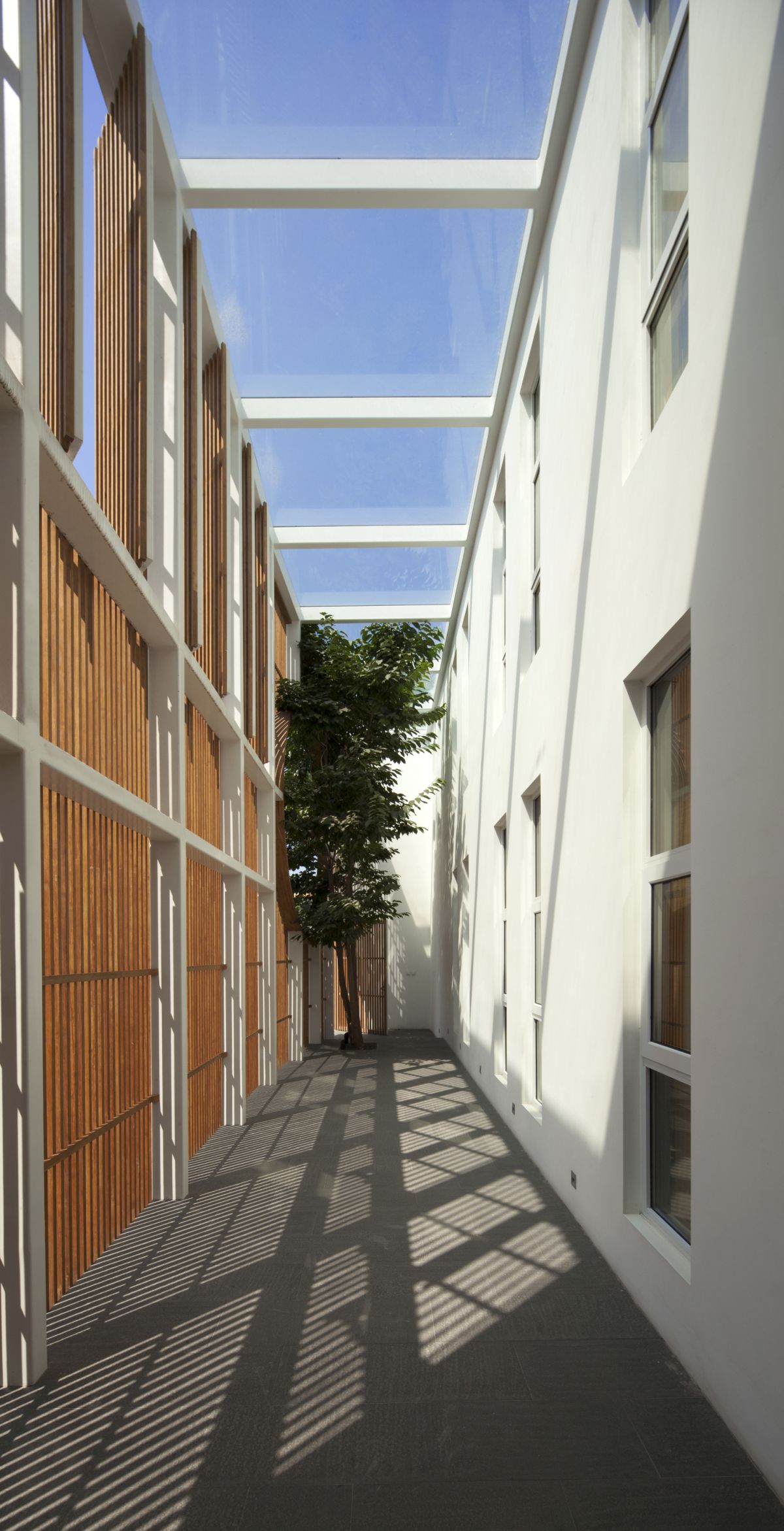 La renovación diseñada por He Wei en Beijing es un ejemplo de ello. El edificio cuenta con patios internos y corredores que acomodan los árboles presentes en el sitio antes de la renovación. El diseño no solo salva los árboles, sino que también trae la naturaleza al corazón del edificio.
