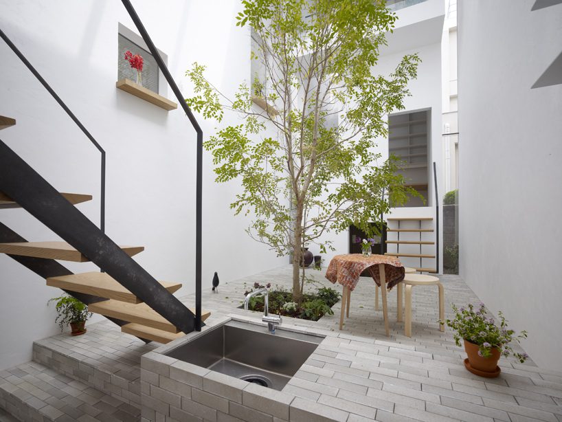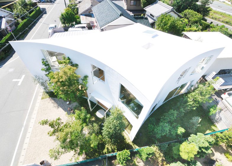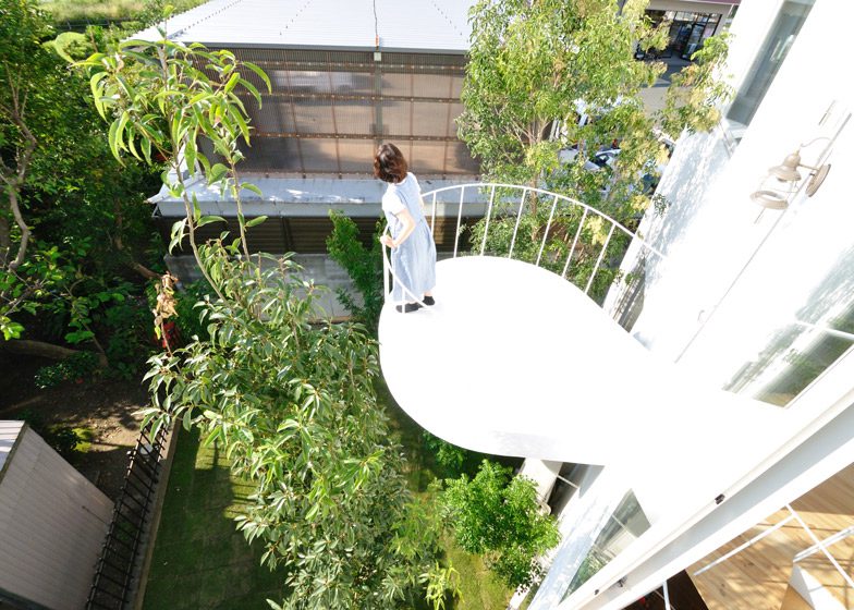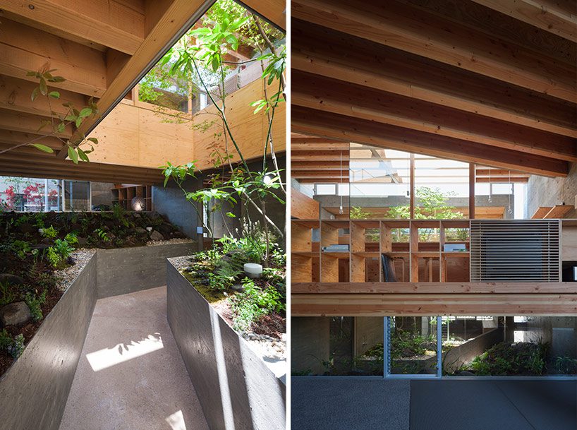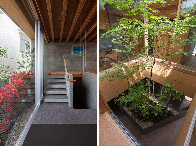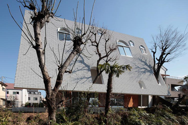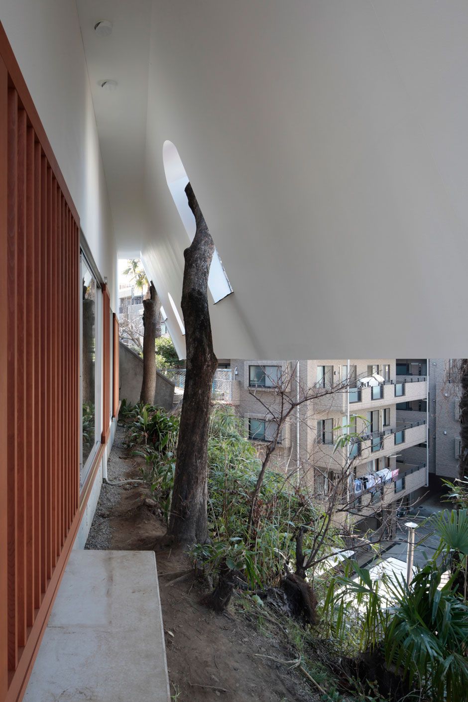 Esta casa en Tokio fue construida por Ondesign & Partners. Los clientes querían que los árboles fueran preservados y se les permitió perforar los pisos y el techo. Las ventanas se colocaron de tal manera que permitieran que los árboles estiraran sus ramas hacia el exterior sin verse fuera de lugar. Se eligió esta solución inusual debido a la falta de espacio. El sitio era demasiado pequeño para sortear los árboles, por lo que se integraron en el edificio.