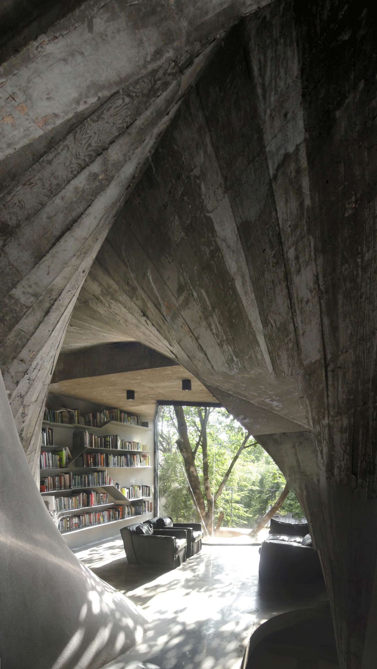 Un caso similar se puede encontrar en México. The Tepoztlan Lounge es una residencia contemporánea construida aquí por Cadaval & Sola-Morale s entre 2009 y 2012. La casa es relativamente pequeña y se encuentra entre los acantilados, rodeada de bosques. En lugar de evitar los árboles, los arquitectos decidieron abrazarlos.