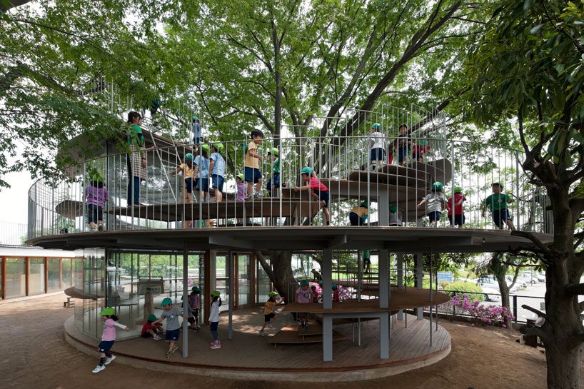 La estructura se construyó cerca de una escuela existente y sirve como patio de recreo y espacio para impartir clases. El tronco y las ramas del árbol se retuercen y giran y los bancos, las escaleras y los pisos siguen sus líneas y forman una espiral alrededor del árbol. El proyecto es un homenaje a la naturaleza más que una forma de extinguirla.