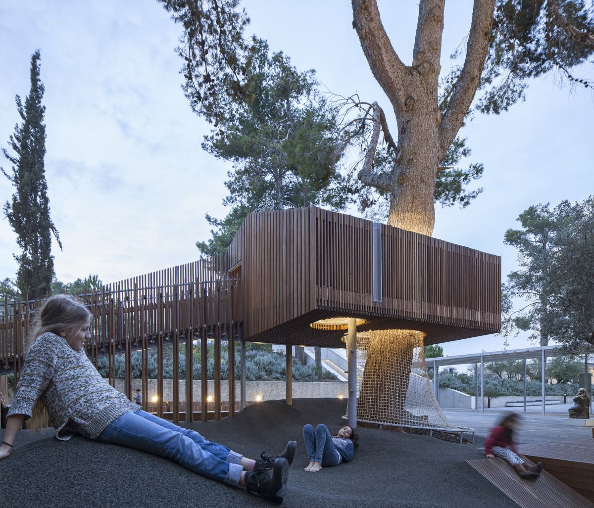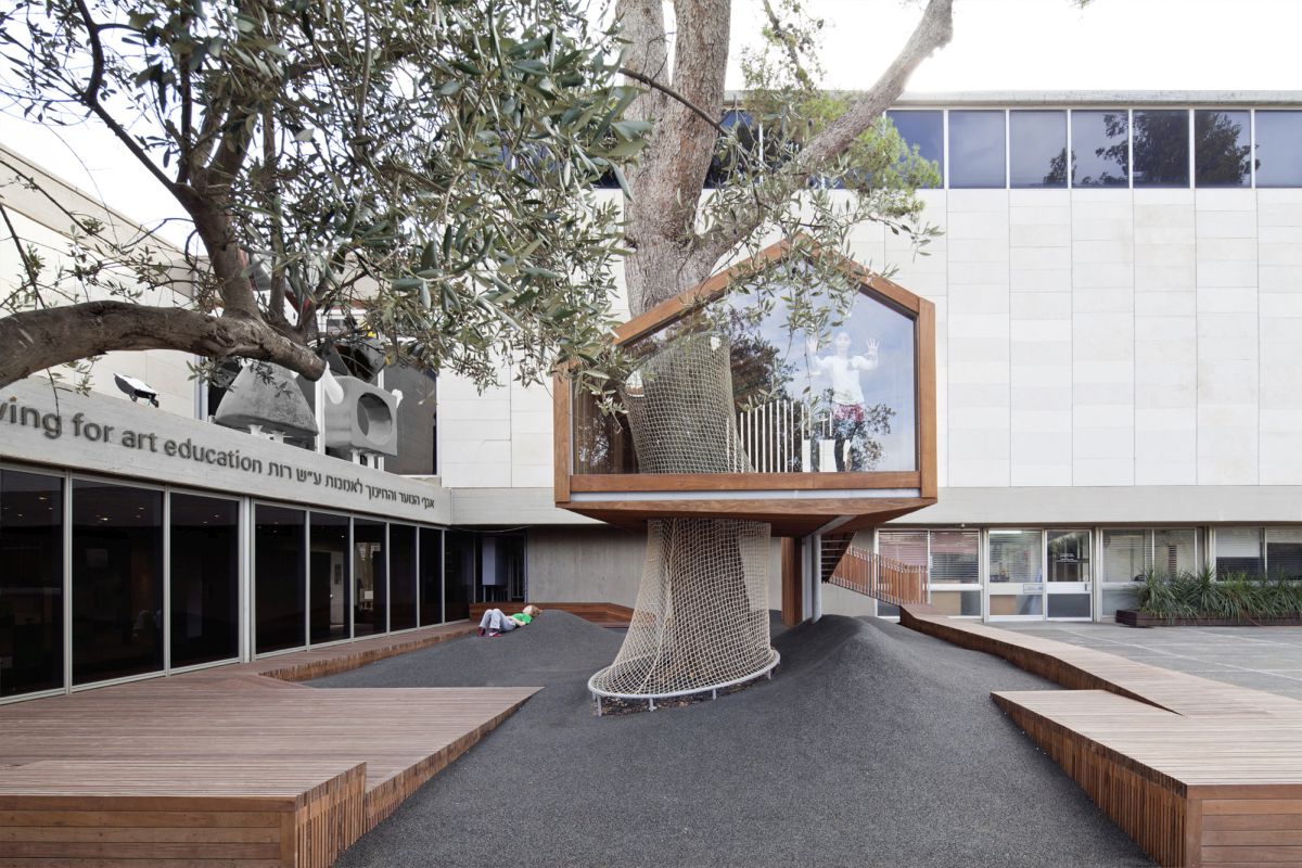 El Ala Juvenil para la Educación Artística del Museo de Israel ubicado en Jerusalén tiene un patio recientemente renovado que ahora alberga una estructura escultórica que se asemeja a una casa en un árbol. El nuevo diseño gira en torno a un gran pino. El árbol está en el centro de una pequeña estructura en forma de caja sostenida por pilares y construida alrededor del tronco del árbol.