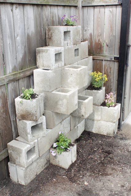 Aquí hay una excelente manera de hacer que un jardín de bloques de cemento sea atractivo. Usa bloques de cemento para construir una pared con ranuras adorables en lugares aleatorios. Si te gustan las plantas pequeñas, esta es perfecta para exhibirlas.