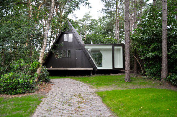 Esta es la Casa SH , un simple marco en A ubicado en Amsterdam. Fue renovada y ampliada en 2011. Todavía se pueden ver algunos de los detalles originales de cuando se construyó la casa en 1932. Los arquitectos combinaron las adiciones modernas como las paredes de vidrio en la planta baja y la cubierta con las partes antiguas de la casa.