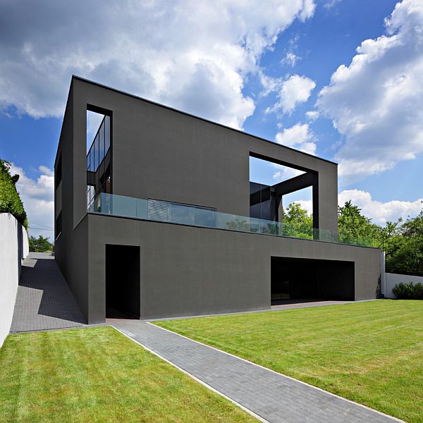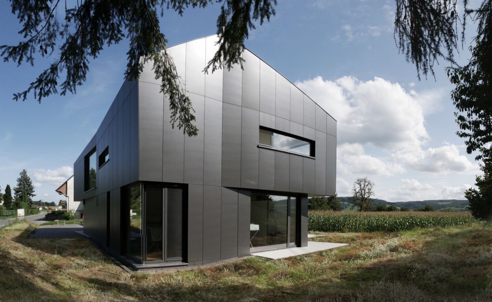 Diseñada por Benjamin Heller , esta casa negra tiene una apariencia de joya con sus paneles negros que brillan como las facetas de una piedra preciosa. Ubicada en Öhningen, un balneario cerca del lago de Constanza, Alemania, se asienta en el acantilado del vecindario.