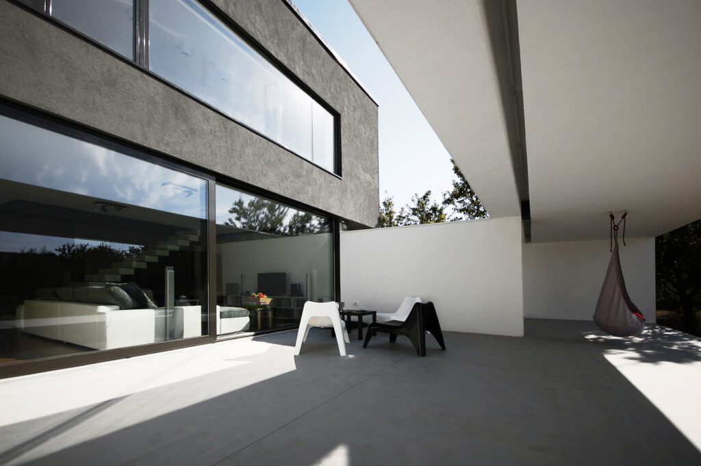 CEBRA Architecture diseñó la casa, cuyo objetivo era fusionar grandes secciones de ventanas de vidrio con el deseo general de privacidad de los propietarios. Como resultado, estas rebanadas también aseguran que la luz solar ingrese a la casa sin importar el ángulo del sol.