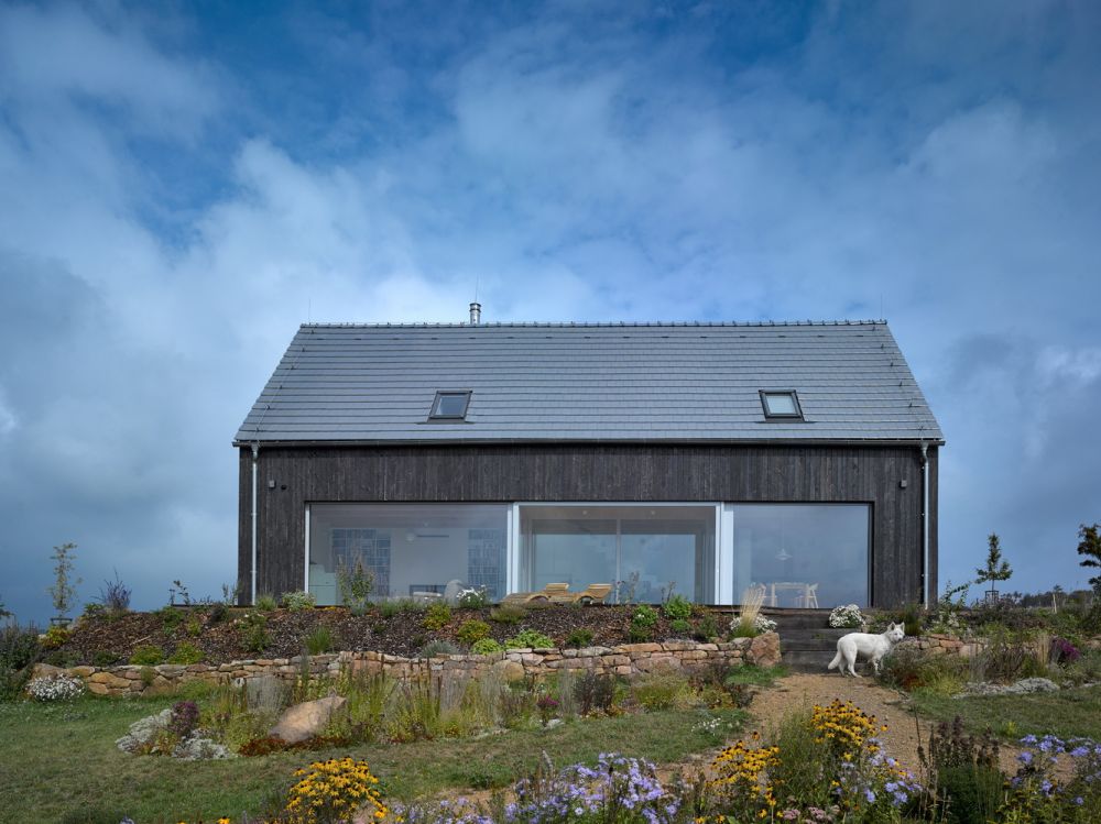 Está frente al mar, lo que le da unas vistas estupendas. En general, la estructura es de acero alrededor de un núcleo de hormigón. En el interior, las paredes son de madera prefabricada ligera. En realidad, la casa no es solo negra. Tiene paneles de hormigón armado con fibra de vidrio gris, yeso antracita y revestimiento de madera de color marrón cálido.