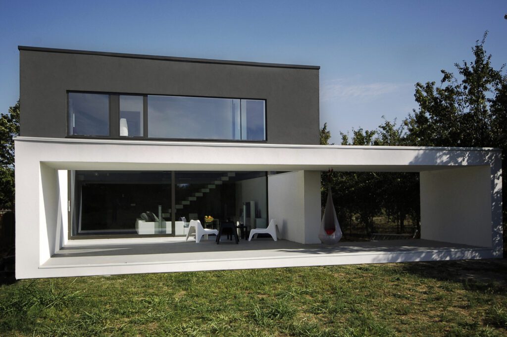 El blanco y negro es una combinación clásica, incluso para el exterior de una casa. Parasite Studio de Rumania creó esta moderna casa negra como una caja oscura. Los muros blancos delimitan los espacios semipúblicos y vinculan la casa con el entorno.