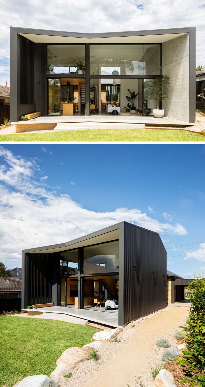 Un exterior negro moderno puede ser una opción ideal para una extensión de una casa existente. Christopher Polly Architect usó un acabado de paneles de metal corrugado negro en la parte ampliada de la casa de ladrillos amarillos en Sydney, construida originalmente en la década de 1960. Los paneles coinciden con las líneas del techo de la parte principal de la casa. Esto le da un sentimiento natural de pertenencia.