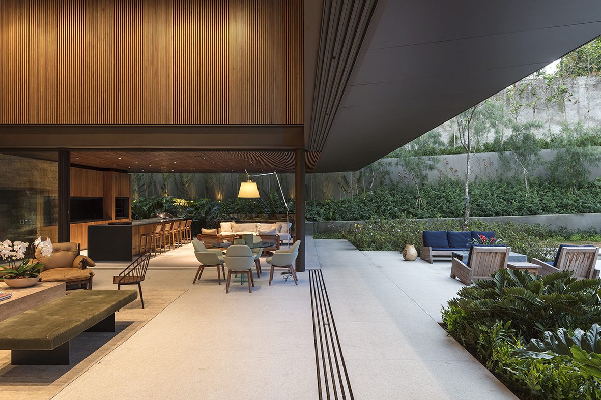 La mansión cubre tres pisos en forma de L. Construido en 2018 por Bernardes Arquitetura en Santana de Parnaíba, no lejos de Sao Paulo en Brasil.