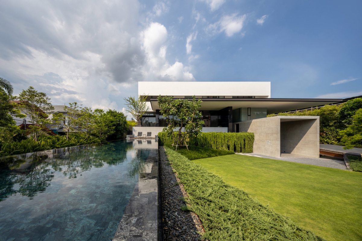 Completado en 2020 por el estudio BOONDESIGN ., Está en Bangkok, Tailandia. La arquitectura es una fusión de naturaleza y estilo. La mansión moderna desdibuja las barreras entre lo natural y lo artificial. Permite que los espacios interiores se extiendan al exterior.