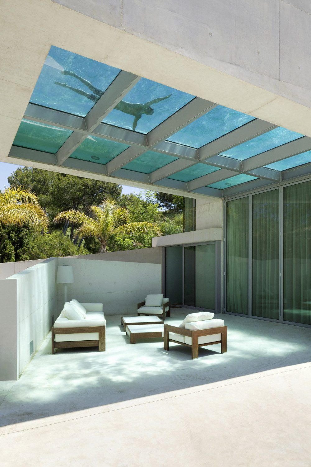 Los arquitectos lograron encontrar una vista para dar a los propietarios de Jellyfish House la vista que querían. Hicieron esto al crear una piscina en la azotea en voladizo con un fondo de vidrio que permite que la luz se filtre y cree patrones fascinantes en el piso de abajo.
