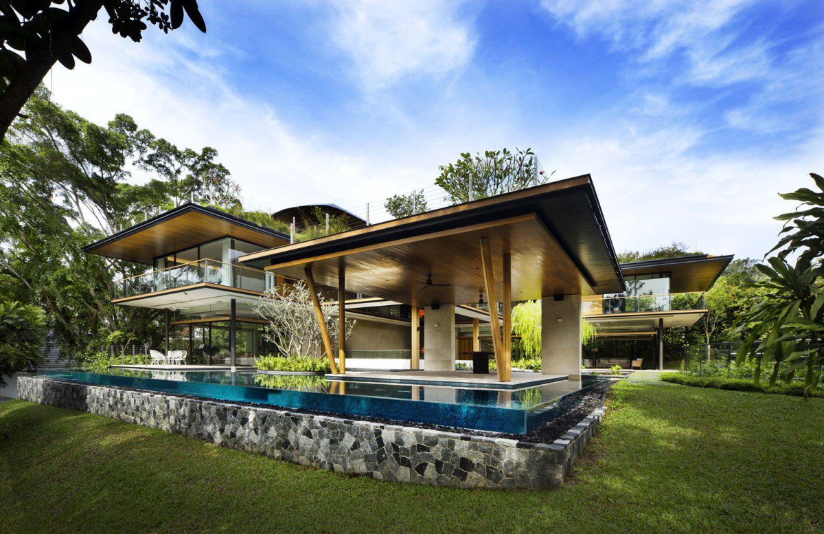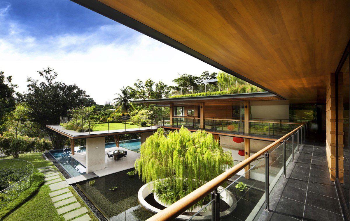 Studio Guz Architects construyó la Casa Ficus en Singapur en 2017. Está diseñada para servir como una casa familiar extendida y el diseño en forma de L permite mantener un buen nivel de privacidad entre los hogares. También hay un patio compartido que conecta las dos alas y crea una transición suave entre ellas, así como entre las áreas interior y exterior.