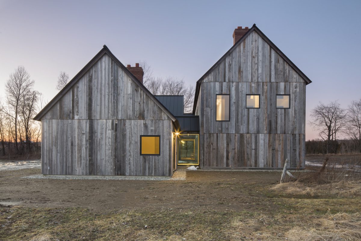 El objetivo de este proyecto era ser ecológico. La vista desde proporciona toda la información que necesita. Los propietarios son conservacionistas de la tierra y preservan los edificios agrícolas. Junto con los arquitectos, eligieron madera de tsuga recuperada de graneros en ruinas en toda la región de Ontario para revestir su pequeña y encantadora mansión.
