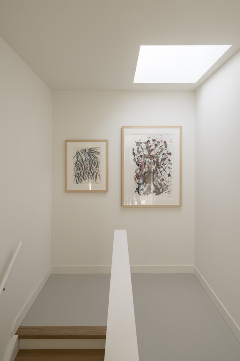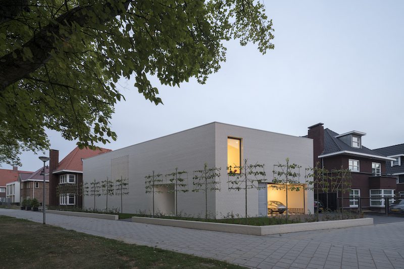 El programa de 480 metros cuadrados de la residencia se organiza en dos niveles con espacios que se abren a un jardín. El diseño general está inspirado en la arquitectura modernista de la década de 1930, definido por algunos elementos como fuertes contrastes entre las superficies planas y fluidas o los espacios abiertos y cerrados, pero también por una trayectoria de diseño que es un poco más vanguardista en comparación con los edificios vecinos. Esta dirección vintage-moderna también se enfatiza con la fachada de ladrillos de color marfil.