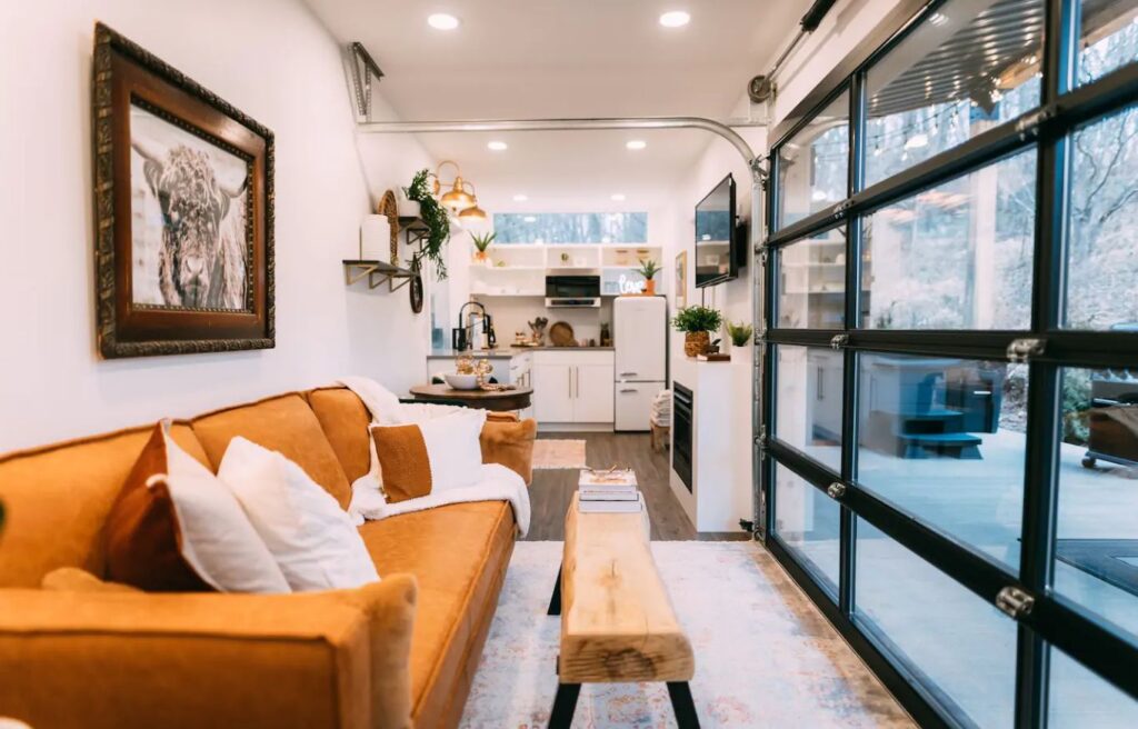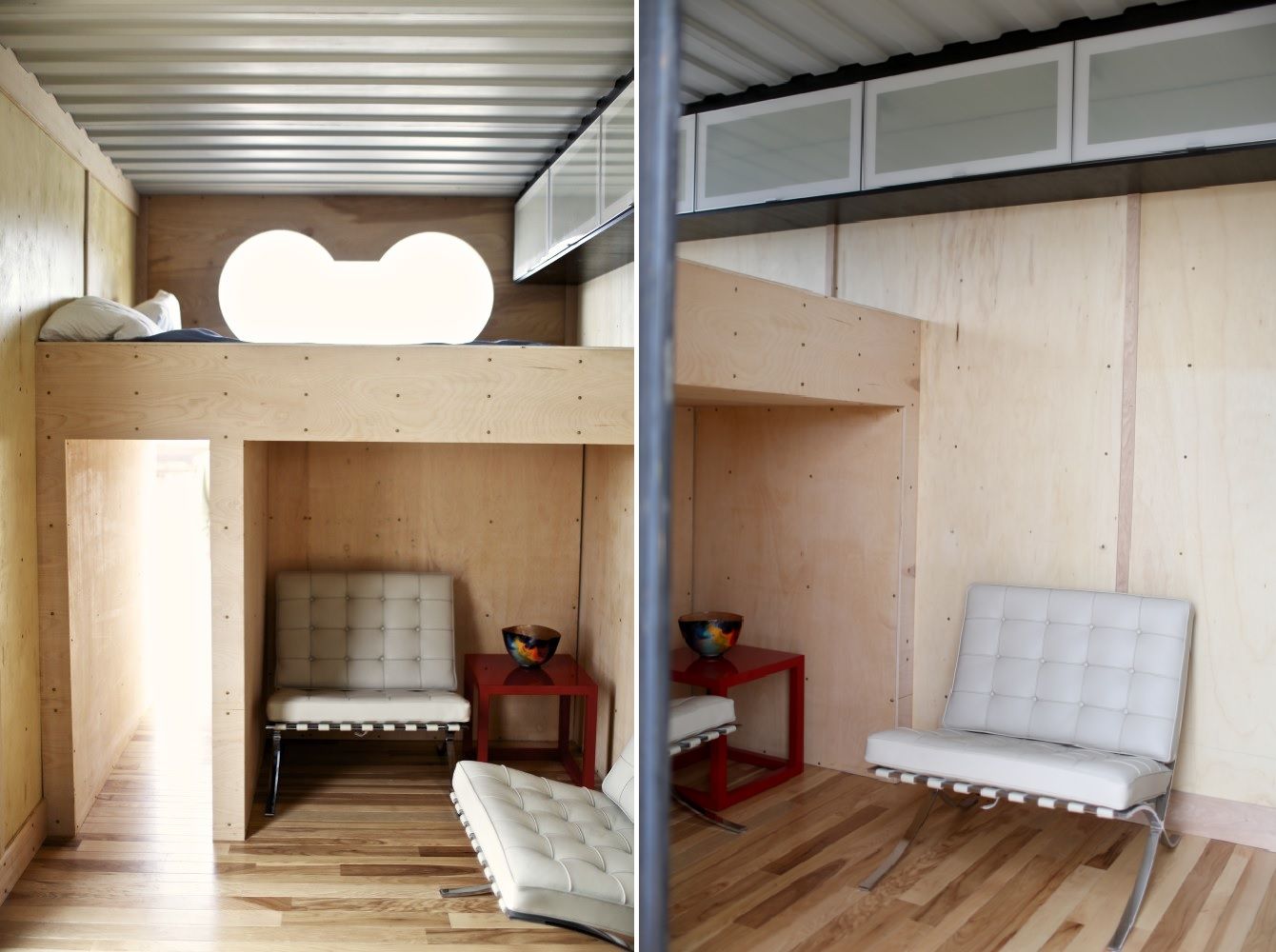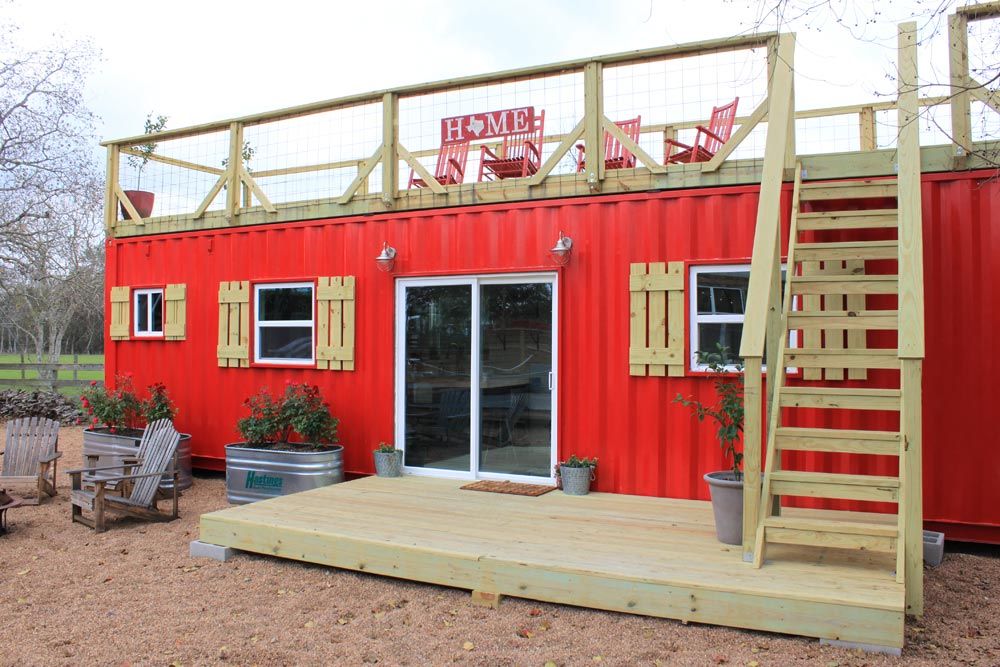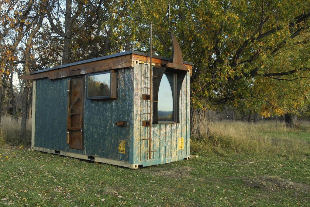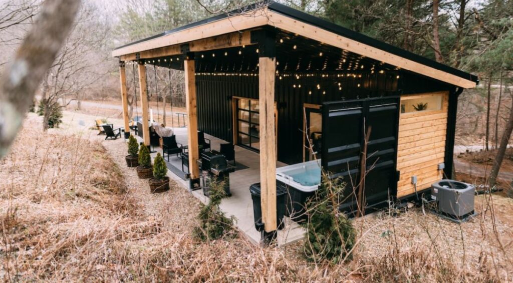 Esta casa de contenedores única en su tipo fue construida por el arquitecto Ty Kelley , quien quería que fuera un retiro fuera de la red con todos los lujos de una casa moderna y el encanto de una vivienda rústica. La casa estaba listada en $125,000. Tiene una superficie total de 720 pies cuadrados e incluye un dormitorio, un baño, una cocina, un área de lavado, un área de trabajo y una elegante sala de estar. Los arquitectos utilizaron muchos materiales recuperados, incluida la madera utilizada para el piso y los mostradores. La fachada trasera está acristalada y diseñada para traer el aire libre y una plataforma de madera extiende el espacio habitable al exterior y actúa como un conector entre los espacios interiores y el paisaje que rodea la casa.