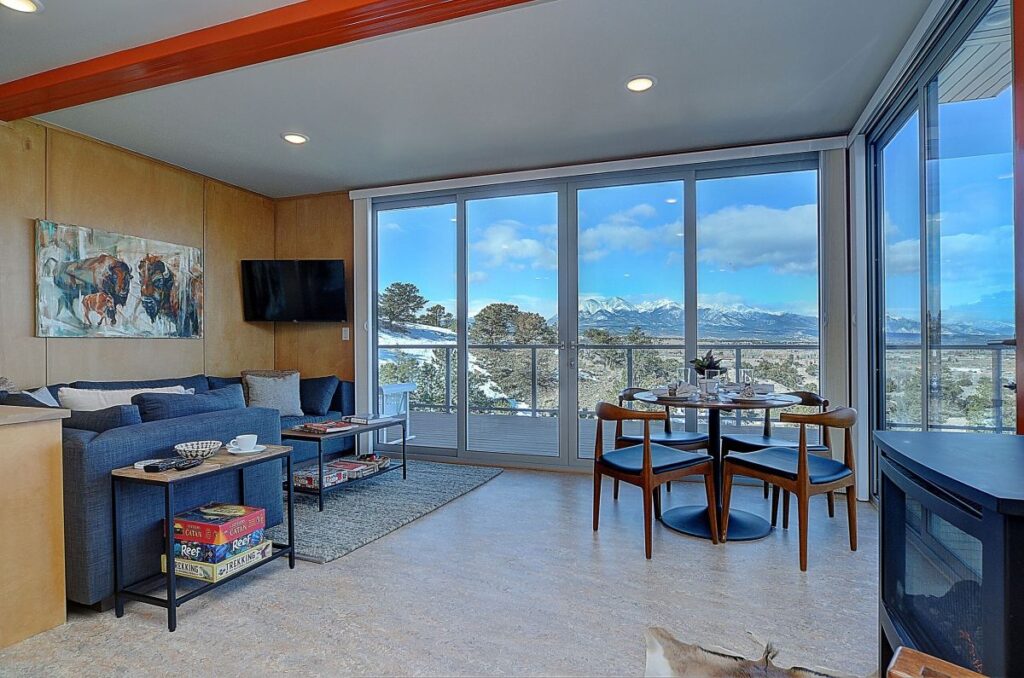 Puedes encontrar un lugar así en Salida, Colorado. En realidad, esta es una casa bastante espaciosa con un diseño inspirado en mediados de siglo realmente agradable y un exterior de color naranja brillante.