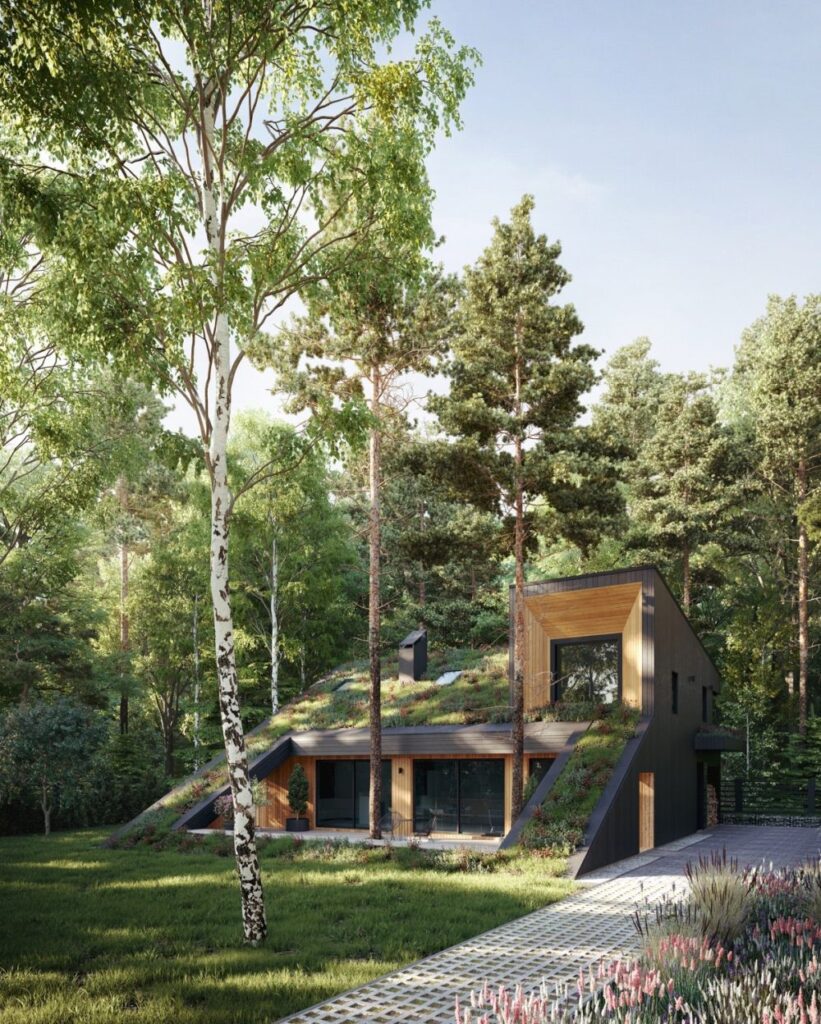 Algunos ejemplos de hermosas casas con techos verdes inclinados