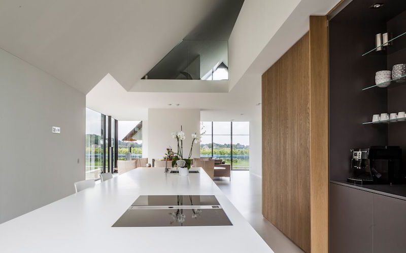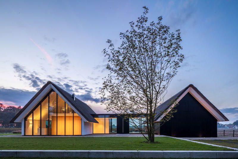 Hemos visto muchas casas con configuraciones inusuales y esta en forma de H es bastante inusual aunque no tan extraña como otras. Esta configuración espacial es muy práctica. El edificio se organiza como un par de dos volúmenes conectados por un pasillo, de ahí la forma de H. La casa fue diseñada por Maas Architecten y está ubicada en Berlicum, Países Bajos.