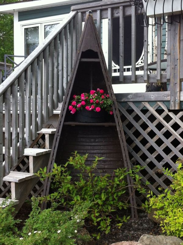 En el jardín, la canoa podría ser una jardinera, como ya hemos comentado. Este es un poco diferente porque la canoa se ha elevado sobre el suelo y su forma se destaca más.