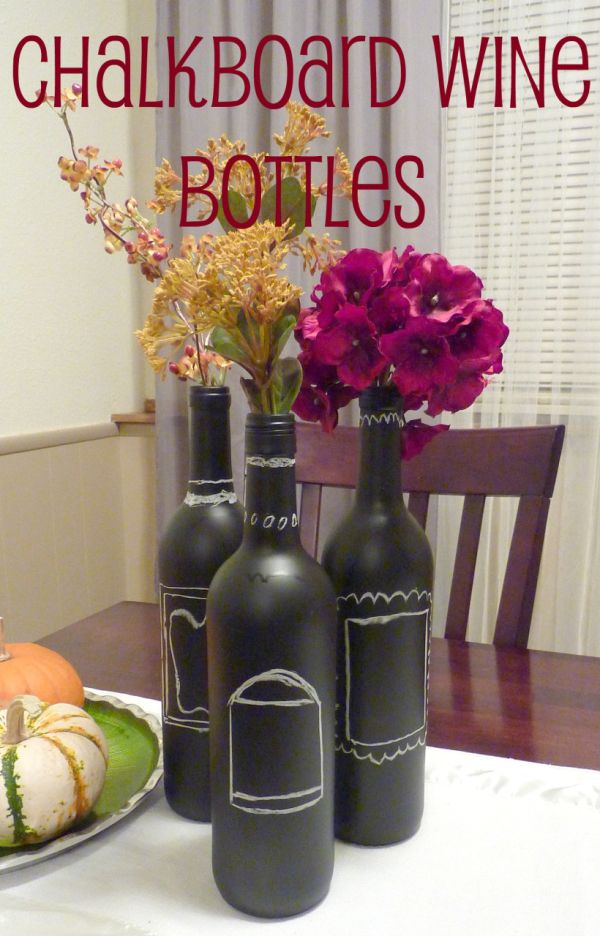 Las botellas de vino pintadas con pizarra son particularmente atractivas no solo porque tienen un bonito acabado mate, sino también por su versatilidad y por el hecho de que te permiten elegir un diseño casual, divertido, elegante o simple para ellas. {Encontrado en annebronkema }.