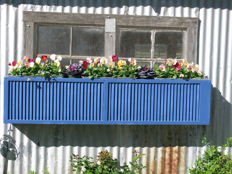 Aquí hay una idea realmente genial: reutilizar contraventanas viejas en una hermosa jardinera. La idea viene de Sandflatfarm . Probablemente necesitará dos contraventanas para hacer una caja de este tipo, pero eso depende del tamaño de sus ventanas. La caja que se muestra aquí estaba pintada de azul, un hermoso color que la ayuda a resaltar.