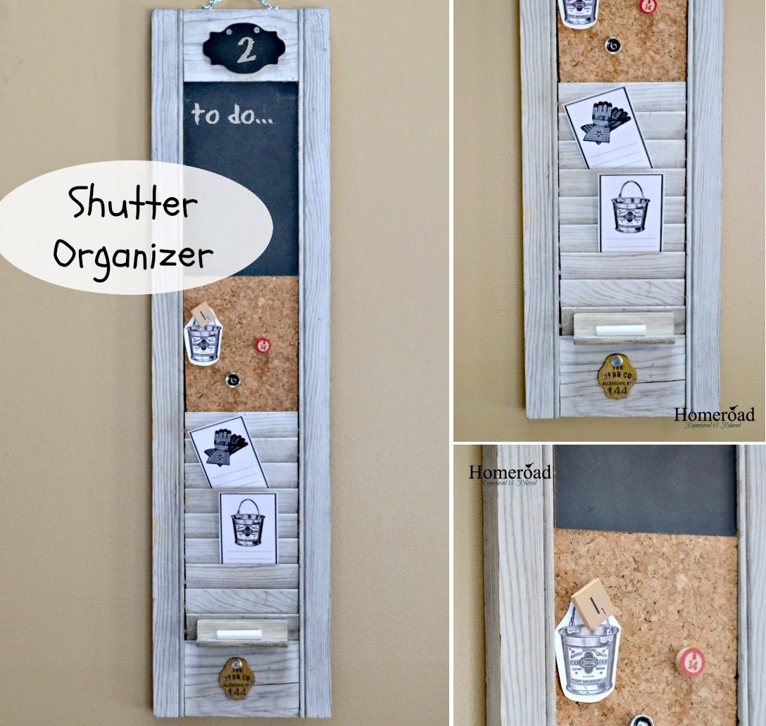 Simplemente nos encanta la idea de una vieja contraventana reutilizada como organizador para la cocina. No solo es una adición útil y práctica a la habitación, sino también una gran oportunidad para agregar algo de calidez al espacio de una manera menos tradicional y común. Echa un vistazo a Cdscountryliving para ver cómo sería un organizador de este tipo.