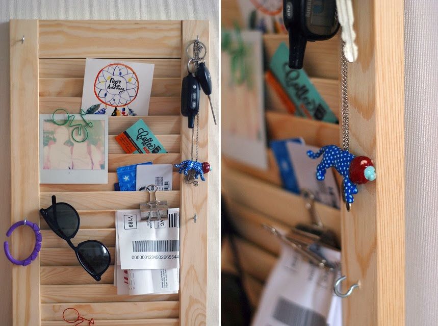 Aparte de la cocina, la entrada es probablemente el área donde una persiana reutilizada podría ser más útil. Ya mencionamos esto y ahora le mostraremos un ejemplo más de cómo puede funcionar. Este es un proyecto que también puede animarte a dar un paso más allá y combinar varios elementos para crear accesorios únicos. Esto es algo que encontramos en Theharpsterhome .